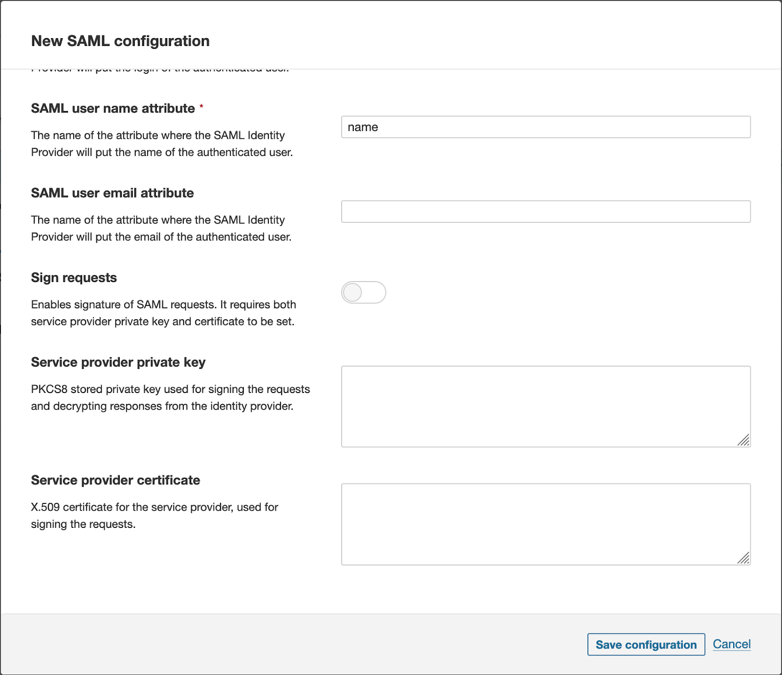 Step 1: Save the SAML configuration by clicking Save configuration.